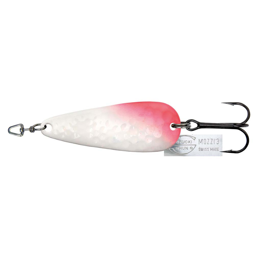 Der Mozzi ist wohl der beliebteste und meistgefischte Löffel in der Schweiz. Dank seiner gehämmerten Oberfläche und seiner leichten Wölbung vollführt er ein Spiel, dem Fische einfach nicht widerstehen können. Sei es Forelle, Hecht, Zander oder Lachs, mit dem MOZZI werden Sie nie enttäuscht.