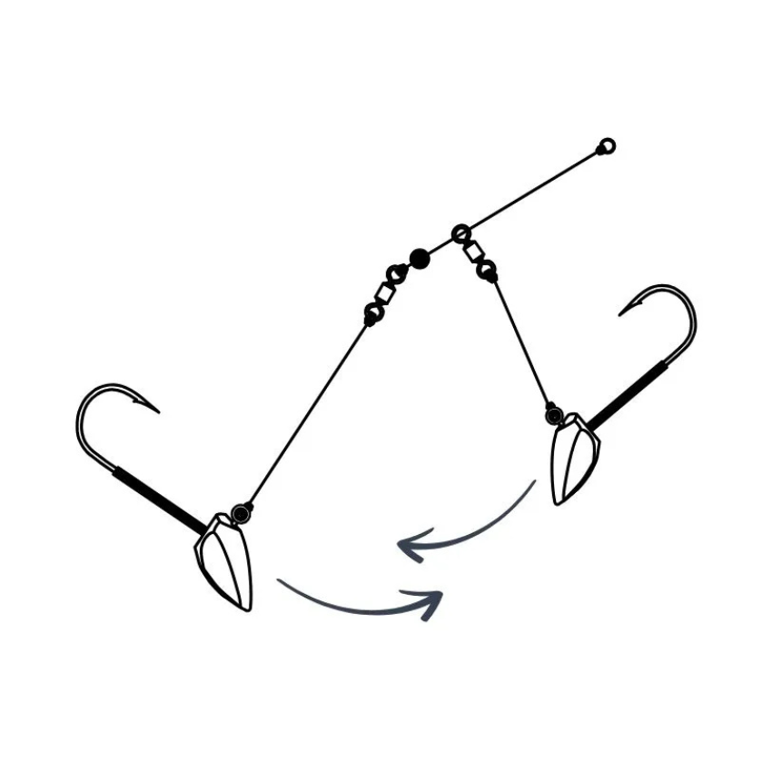 Zwei Dart Jigs, ein Ziel: maximale Reizwirkung. Das Double Dart Rig vereint 5 g und 7 g schwere Jigs zu einem fix-fertigen Setup, das mit dynamischer, gekreuzter Dart-Action auf sich aufmerksam macht. So entsteht das perfekte Spiel zweier flüchtender Beutefische – kaum ein Räuber kann da widerstehen.